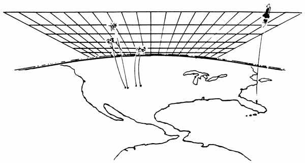 In latter October and early November, 1986, significant giant radial cloud patterns, associated with Soviet weather engineering using the scalar EM interference grid, were seen and photographed over California in the greater Los Angeles area. On Monday, Nov. 10, 1986 an anomalous, giant "fireball" was seen by hundreds of persons to move from west to east. It was seen over 4 states, and accompanied very sharp changes in the EM grid. An anomalous winter storm was in progress, with cold air spilling down from Canada. The storm penetrated very deeply southward, breaking cold records in a wide area of the mid-United States. At the same time, heat records were being broken in Florida, and generally throughout the southeast. Frank Golden verified by direct measurement that the electrogravitational field of the earth was agitated and most dynamic—in short, significant activity was being introduced by the Soviet scalar EM grid. (The activity was about half what it is when the Soviets are inducing an earthquake.).
