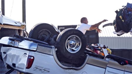 A tornado passed through our town of Westlake, Louisiana early in the morning of January 13, 1995. No damage came to our house, but two trees fell down in my mother’s front yard. The electric light utility pole on my mother’s house broke during the storm, and a neighbor said he saw a big flash of fire spread right across the utility pole on to the top of my mother’s roof, but no damage came. The fire vanished almost immediately. My trailer was rocking with the wind, so was my grandmother’s trailer house, too, but no damage to either one of them. An electric fire also flashed over my grandmother’s trailer on the roof, but no damage.