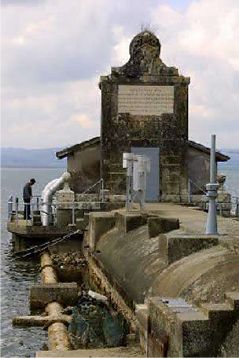 (Picture right) A man looks at water levels at a pumping station on Lake Bracciano in Anguillara, north of Rome, February 20, 2002. Italian police said they had arrested four Moroccans in possession of large quantities of the deadly poison cyanide and maps of Rome highlighting the U.S. embassy and the city's water supply.