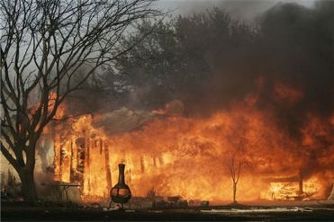 on the crunchy, dry grass. A fallen power line apparently started one Oklahoma
