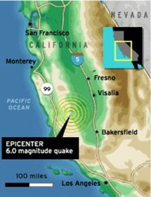 The quake, which struck at 10:15 a.m. PDT, had a preliminary magnitude of 6.0 and was centered 7 miles southeast of Parkfield, the town known as California's earthquake capital, according to the U.S. Geological Survey. The area is 21 miles northeast of Paso Robles, scene of an earthquake that killed two people in December.