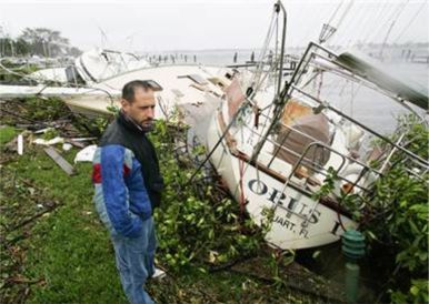 Hurricane Frances' wind and water whacked swaths of Florida with fire-hose force Sunday, submerging entire roadways and tearing off rooftops before weakening to a tropical storm and crawling inland with heavy rain. More than 5 million people lost power, and two people were killed.
