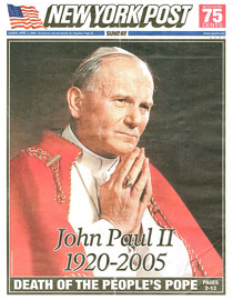 Major news media around the world devoted 10 times as many stories to Pope John Paul II's death as they did to the re-election of President Bush, according to an analysis released Monday. The Global Language Monitor, which scans the Internet for the use of specific words or phrases using Roman characters, found 35,000 new stories on the pope in the 24 hours after his death Saturday.