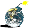 it; it looks like he's about to touch the wick on the bomb. It looks