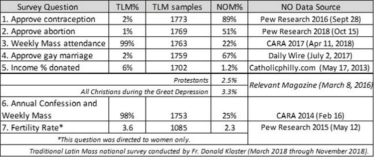 - 2% of TLM-attending Catholics approved of contraception vs. 89% of NOM Catholics.