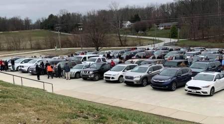 Fr. Shaun Whittington of St. Nicholas Catholic Church in Sunman, Indiana, forged ahead last weekend and offered Mass in the parish parking lot, not unlike drive-in movie theaters of times past.