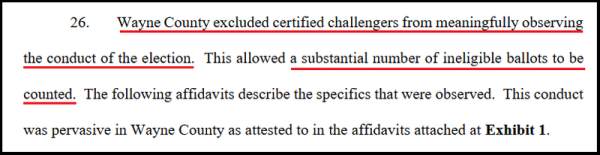 The filing also claims that ballots which could not be read by a machine were unlawfully duplicated out of the view of challengers, and weren't conducted by a bipartisan pair of election inspectors.