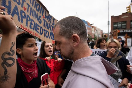 At 8:06am, what began as a peaceful Saturday morning ended abruptly as a crowd assembled before the doors St. Paul’s Church in Brooklyn chanting “This church harasses women! This church harasses women!”