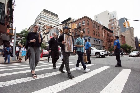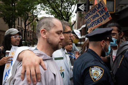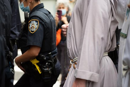 Undeterred, a priest from the Franciscan Friars of the Renewal and a priest the Diocese of Brooklyn led the group down Court Street in a procession that resembled Jesus’ walk to Calvary. Complete with falls, spit and hate.