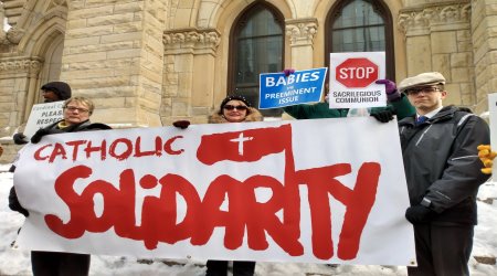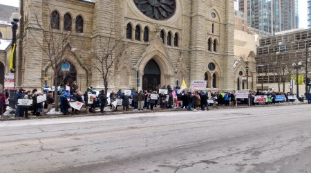A huge February 7 rosary rally of 200 faithful took place on the tiny sidewalk in front of Chicago's Holy Name Cathedral, despite a freezing cold (-7°C) and a chilly wind.