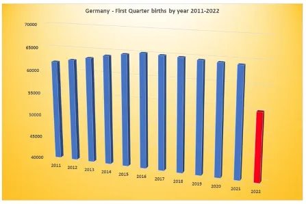 Now check out Germany’s first quarter births compared to the first quarter in previous years: