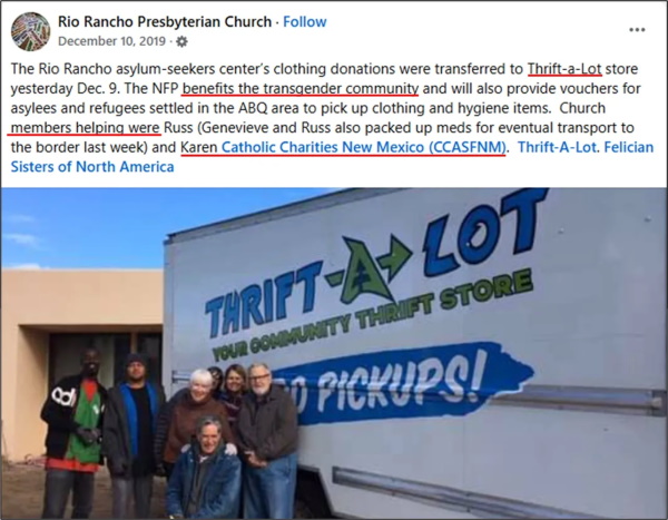CCASFNM’s partnership and support for LGBT advocacy groups appears to go back as far as 2019. On 10 Dec. 2019, CCASFNM members assisted with a clothing donation to Thrift-A-Lot, a non-profit that “benefits the transgender community.”