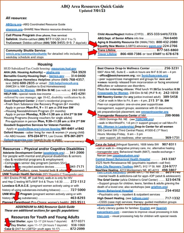 And while CCASFNM has a history of partnering with and promoting LGBT ideologies and organizations, it has even promoted Planned Parenthood and several LGBT advocacy organizations on its own website. From at least 2023 until 17 February of this year (and possibly longer), CCASFNM provided an “ABQ Area Resources Quick Guide” on its own website that listed several LGBT, transgender care organizations, as well as Planned Parenthood. Such organizations include the following: