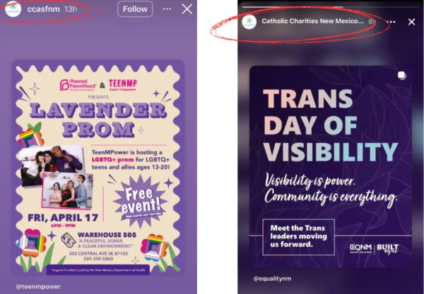 Last week, Elisa Martinez of the New Mexico Alliance for Life discovered that the Catholic Charities of Central New Mexico (CCASFNM) promoted a Planned Parenthood-sponsored event called the “Lavender Prom” as well as the Transgender Day of Visibility. Martinez reported: