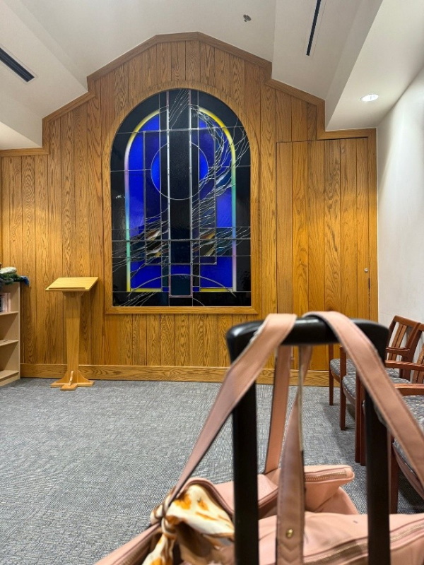 The room featured some stained glass. Kind of a cross? If you squint and pretend and think hard about crosses?