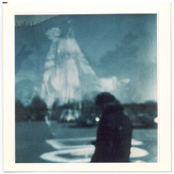 una cámara instamática Polaroid en los terrenos del Santuario.)